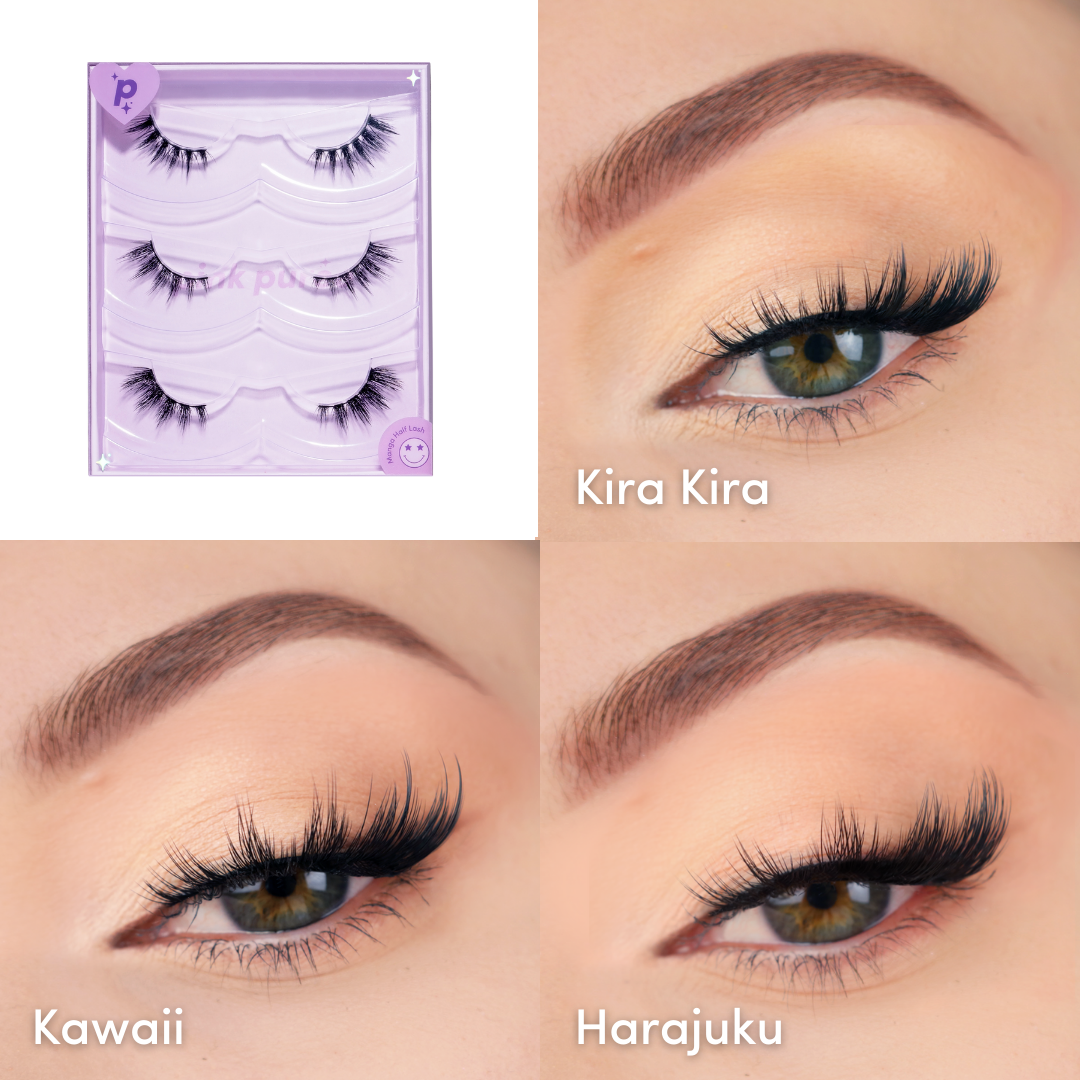 Featuring Kira Kira for a soft, wet lash look, Kawaii for fluttery fox-eye glam, and Harajuku for bold, voluminous drama. Each pair is designed with a comfortable pre-cut 3/4 band—no trimming and no inner corner poking—for effortless application every time. Whether you’re going subtle or bold, this trio has you covered.